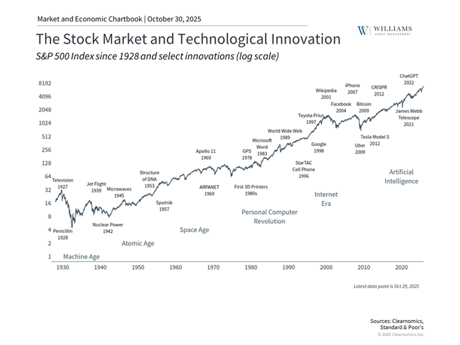 The railroad boom of the 1800s, the electrification of the early 1900s, the “tronics” wave of the mid-20th century, and the internet revolution of the 1990s all followed similar patterns. Initial enthusiasm drove investment and rising stock prices. Eventually, reality caught up, and markets corrected as investors realized the technology would take longer to generate returns than anticipated. Yet all of these innovations fundamentally transformed the economy.