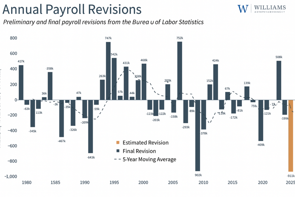 Compounding labor market weakening concerns, recent payroll revisions have revealed a more subdued job growth picture than earlier data suggested. The Bureau of Labor Statistics’ annual revision process indicated 911,000 fewer new positions were created from March 2024 to March 2025, implying the labor market cooled more rapidly than policymakers recognized when making previous monetary policy choices. These preliminary estimates will receive finalization in early 2026.